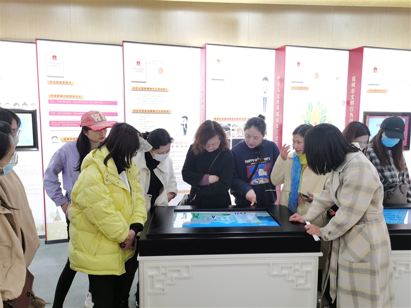 隨后,“娘子軍”們前往宣城宛陵湖法治文化館參觀。大家認(rèn)真聆聽講解員的講解,依次參觀了“尊法學(xué)法”“守法用法”“普法路上”三個(gè)展區(qū),現(xiàn)場(chǎng)學(xué)習(xí)了法治文化,觀看了宣城市普法宣傳片和法治故事短片,體驗(yàn)了法治模擬場(chǎng)景。通過參觀學(xué)習(xí),進(jìn)一步增強(qiáng)了她們尊法學(xué)法守法用法意識(shí),將法治觀念融入今后工作和生活中,做到廉潔從業(yè),依法履職。