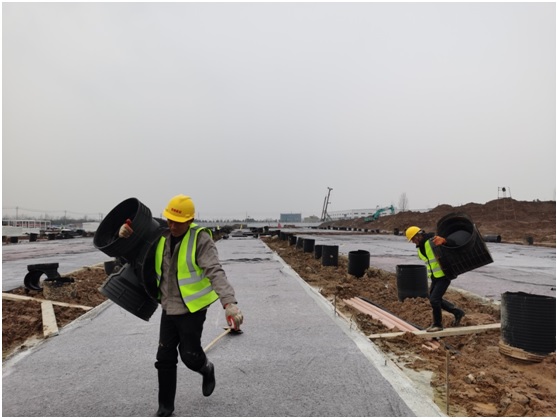 2月1日,農(nóng)歷大年初一,隔離點(diǎn)項(xiàng)目室外附屬班組施工人員正在進(jìn)行雨污水管道施工作業(yè),雖然經(jīng)過(guò)節(jié)前加班加點(diǎn)的搶建工作,隔離點(diǎn)項(xiàng)目房屋基礎(chǔ)工程和道路工程已全部完工,但為了保證春節(jié)期間項(xiàng)目現(xiàn)場(chǎng)安全及已完工程的成品保護(hù),項(xiàng)目部安排了春節(jié)期間值班值守及工作部署,全力搶工期、抓進(jìn)度,確保節(jié)后順利復(fù)工和項(xiàng)目早日交付。