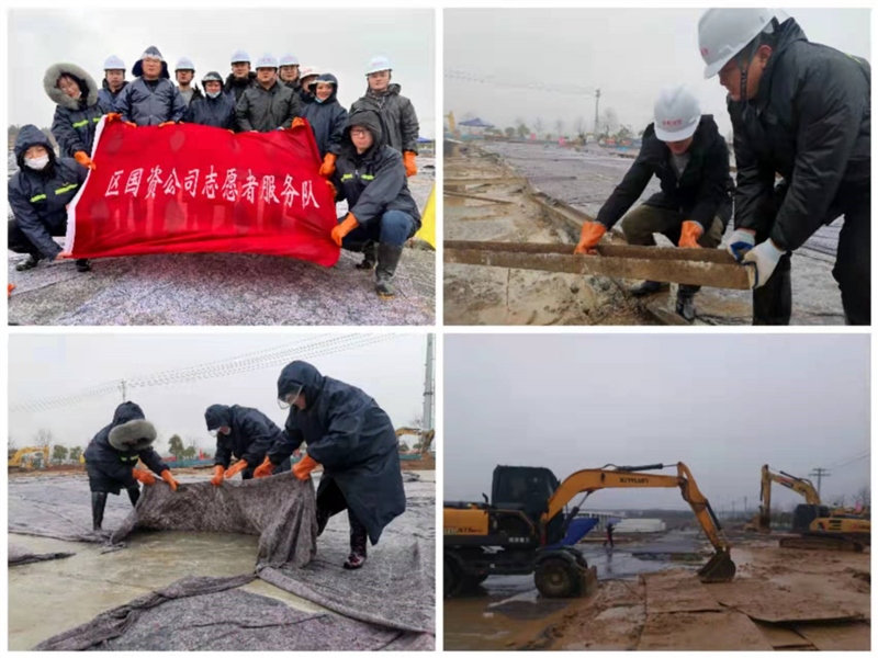 2月2日,農(nóng)歷大年初二,雨雪交加。區(qū)國資集團黨員突擊隊、志愿者服務(wù)隊前往疫情防控隔離點協(xié)助搬運材料、清理廢渣、鋪設(shè)防凍布等,項目現(xiàn)場一派繁忙景象。下午項目建設(shè)組開始布置班組,明日正式開始準(zhǔn)備區(qū)折疊房吊裝施工,確保春節(jié)期間施工組織有條不紊,有序推進(jìn)。