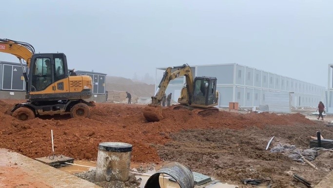 2月14日,宣州區(qū)疫情防控臨時(shí)隔離點(diǎn)項(xiàng)目現(xiàn)場(chǎng)機(jī)器聲轟鳴、腳步聲交響,新一天的施工作業(yè)從漫天大霧的清晨里井而有序的展開。