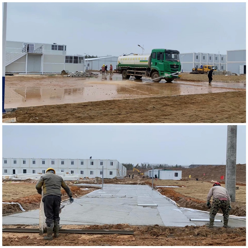 項目建設現(xiàn)已進入最后沖刺階段,各參建單位風雨同舟、日夜兼程,全面加快施工收尾進度。截至目前,板房吊裝工作全部完成,內(nèi)部裝飾裝修施工、空調(diào)、淋浴房、熱水器安裝等工作緊張進行,周邊綠化、室外路燈、圍欄等都在有序施工。在隔離點項目建設上,區(qū)國資集團始終堅持快打猛攻、速戰(zhàn)速決,一鼓作氣確保在本月底之前全面建成交付。