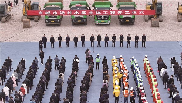 儲(chǔ)濤在講話中指出,宣城市湯村水庫(kù)主體工程開(kāi)工建設(shè),既是全省治水工作的一件大事,也是宣城市經(jīng)濟(jì)社會(huì)發(fā)展中的一件盛事。各相關(guān)部門(mén)和承建單位要強(qiáng)化責(zé)任擔(dān)當(dāng),科學(xué)規(guī)范施工,積極應(yīng)用新技術(shù)、新設(shè)備,同步開(kāi)展數(shù)字孿生建設(shè),注重人文和工程相結(jié)合,努力將湯村水庫(kù)打造成彰顯水科學(xué)、傳承徽文化、展示宣城獨(dú)特魅力的新名片。省水利廳將一如既往地支持宣城水利改革和發(fā)展,齊心協(xié)力、開(kāi)拓奮進(jìn),努力把湯村水庫(kù)建設(shè)成放心工程、滿意工程和精品工程,為奮力譜寫(xiě)中國(guó)式現(xiàn)代化安徽篇章作出水利貢獻(xiàn)。