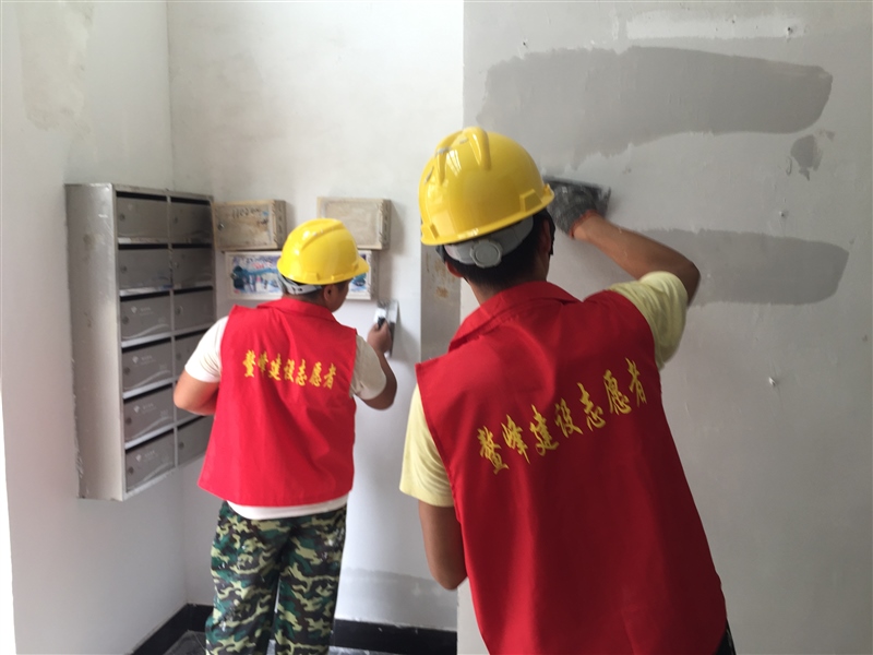 8月26日-8月30日,志愿服務隊來到鉆石鑫城小區(qū)開展小區(qū)清潔志愿服務活動。隊員們對小區(qū)單元樓道墻面上、信箱上的涂鴉“牛皮癬”廣告進行清理,給墻面重新刮膩子、刷涂料,為居民營造良好的生活環(huán)境。
